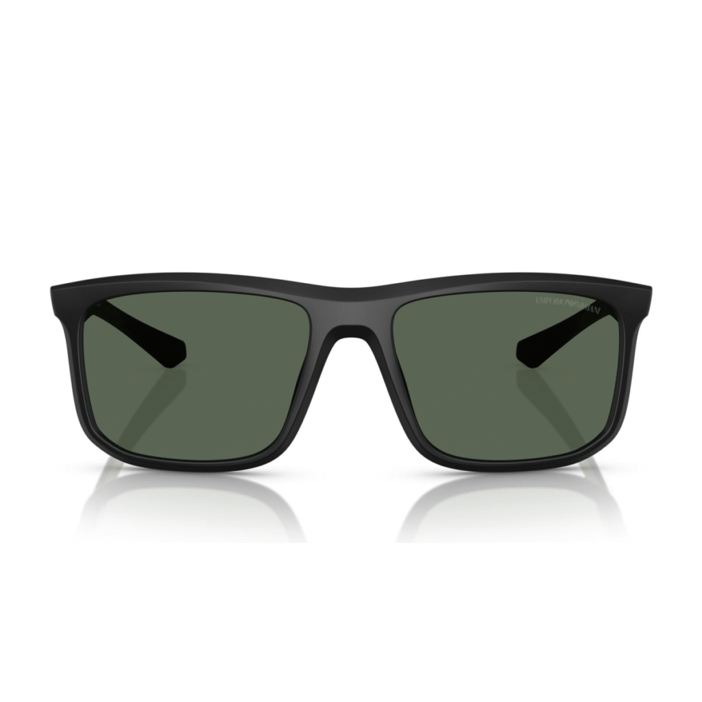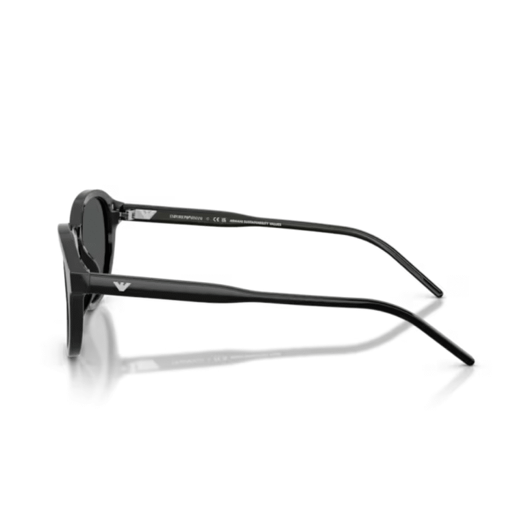 Машки модел кој носи спортски и стилски шмек Црна мат пластика од многу лесен материјал и поликарбонатни некршливи леќи Суптилна метална бренд плочка на слепоочниците