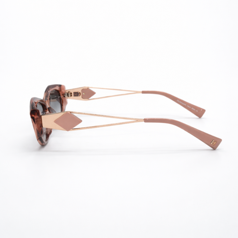 Модернизирана верзија на RayBan од `60 години на минатиот век, со своите оштри рабови и дебела пластика, ова е модел за смели девојки. Пластиката е ацетатна, а стаклата се кристални и нежно сини.