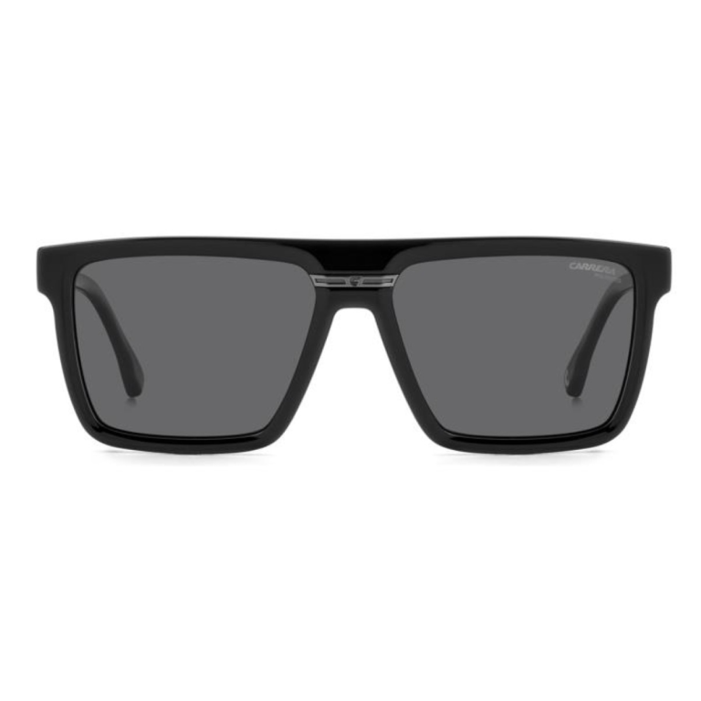 Машки модел кој носи спортски и стилски шмек Сјајна црна ацетатна пластика со градуирани сиви леќи