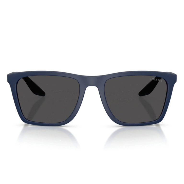 Машки модел кој носи спортски и стилски шмек Црна сјајна ацетатна пластика и поларизирани леќи Фини транспарентни дршки со метална бренд плочка